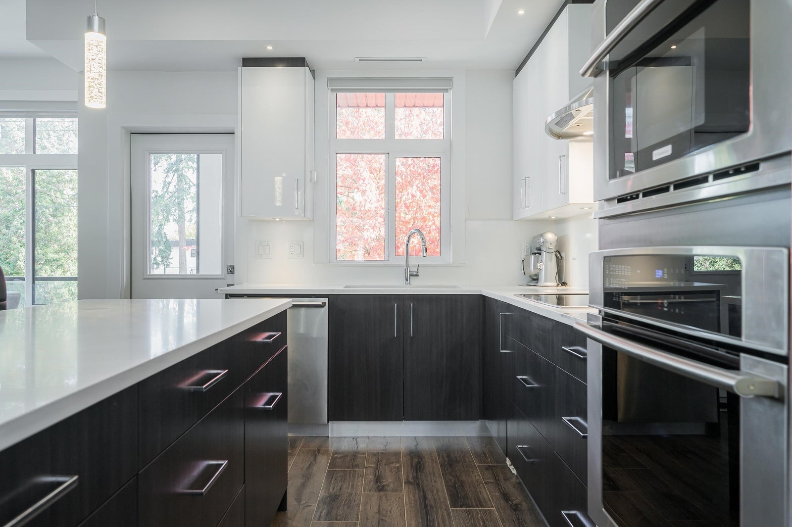 Experience modern living at its finest at Evoque! Stunning bright CORNER home offers the perfect blend of sophistication & sustainability. Convenient double side-by-side garage plus a full double driveway. Step inside to discover a spacious, open layout feat 9-ft ceilings, oversized windows & energy-efficient LED lighting. Electrolux appliances, quartz countertops, wide-plank flooring. Built Green Certified & powered by Geo-Thermal heating + cooling, this home keeps you comfortable year-round while reducing your energy costs. Thoughtfully designed w/2 living areas, 2 covered patios, separate dining area, open den & a bonus storage space. Located near schools, shopping, parks, transit—everything you need is right at your doorstep. Enjoy a residents-only clubhouse & 24-hour fitness centre.