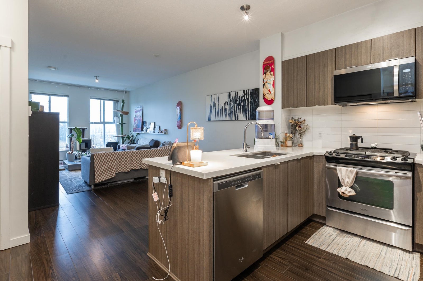 Welcome to Kingston House at Harvard Gardens by Polygon! This beautiful top-floor 2 bedroom, 2 bathroom home features 9 ft ceilings, a cozy gas fireplace, and a bright open layout. The spacious primary bedroom offers a spa-inspired ensuite, creating a perfect retreat. Enjoy your large patio for relaxing or entertaining. Residents have access to an incredible 9,000 sq ft clubhouse with outdoor pool, hot tub, gym, basketball court, theatre room, and more. Ideally located in South Surrey, minutes to Morgan Crossing, Grandview Corners, top schools, and Hwy 99. Resort-style living in a prime location!